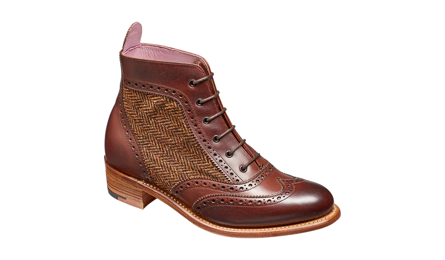 Grace is a lace up boot with suede or tweed panel sections and an elegant Cuban heel. The perfect addition to your winter look.